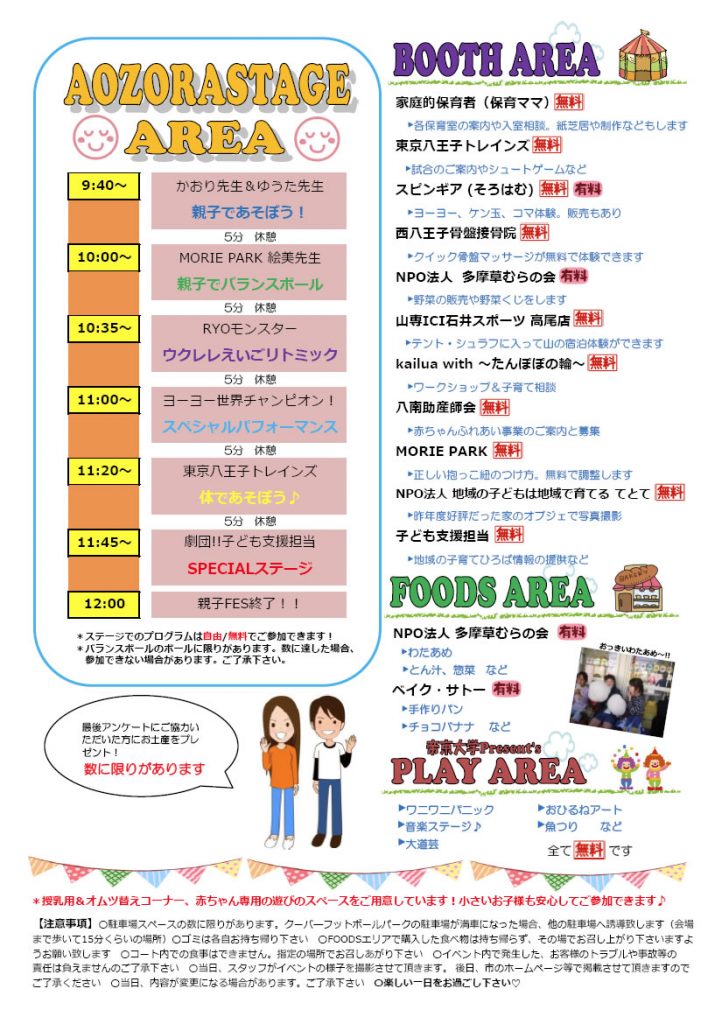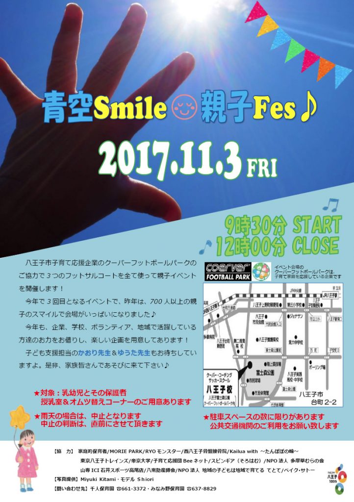 主に八王子の未就学児のお子さんと親御さんを対象にした500人前後の小規模なイベントです。ただ八王子市役所や保育課の方々とイベントをしていくということで今後の八王子でのヨーヨーや独楽の定着につなげていきたいと考えているイベントです。市外の方の参加もできますが幼児向けイベントであるので趣旨を御理解の上遊びに来ていただいたほうが良いと思います。ワークショップのお手伝いなどは大歓迎です。屋外なので雨天中止です。