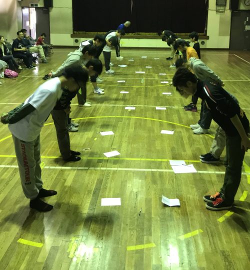 礼に始まり礼に終わる。武道の流れを取り入れてるけん玉道ならではのシーン。