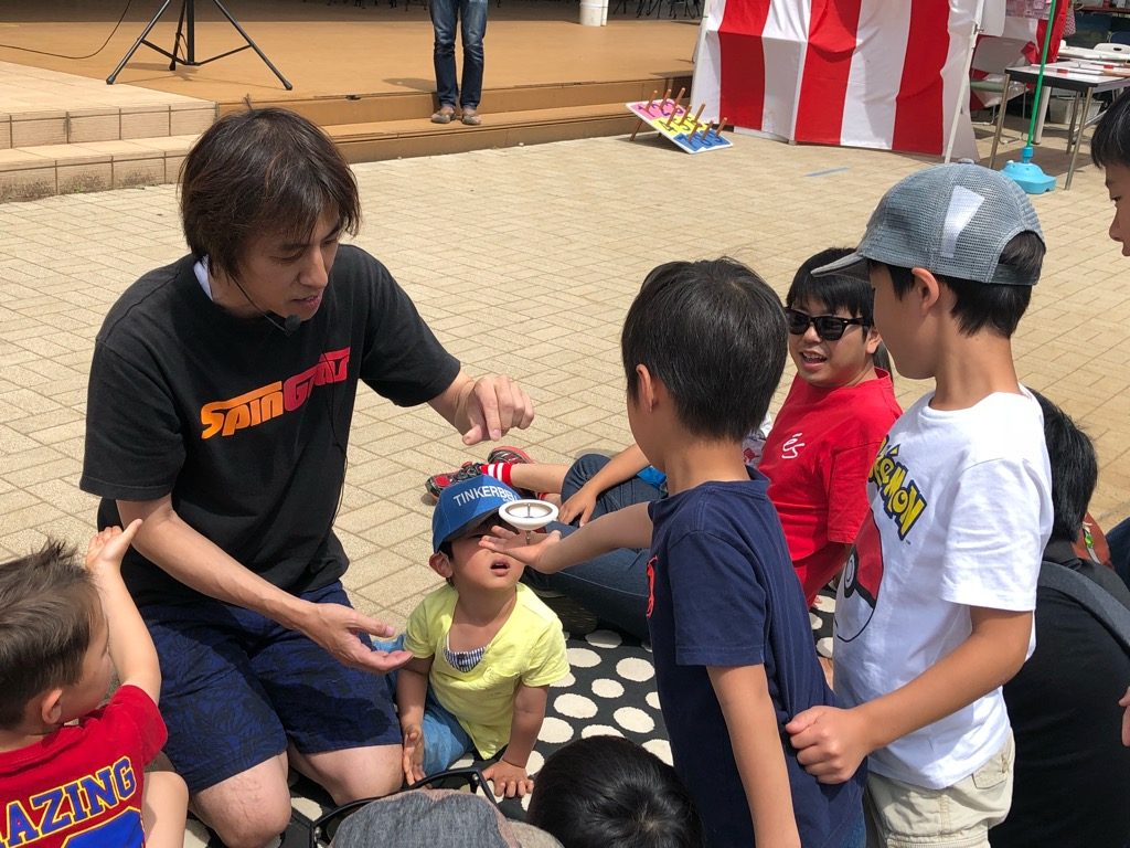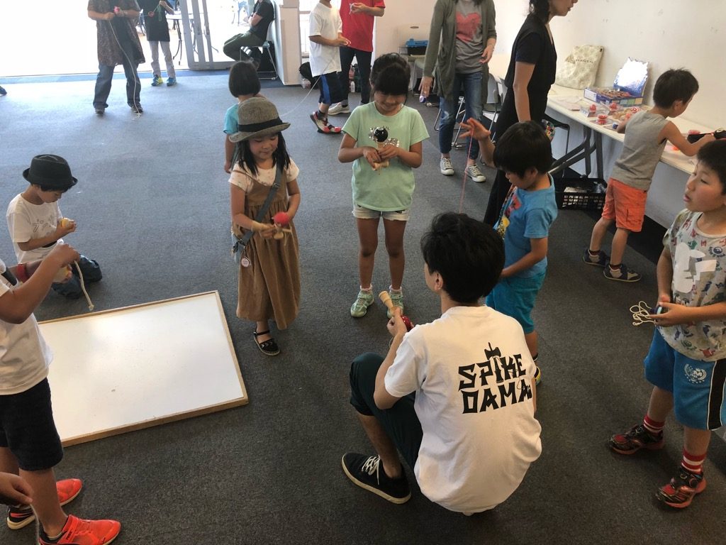 男の子はヨーヨー、女の子はけん玉が人気です。こまをチャレンジするほとんどの子が回すことができるので、こままわしの普及をいつも感じます。