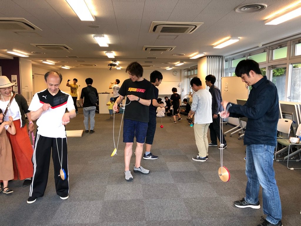 両日とも天気にも恵まれ、爽やかな初夏の訪れを感じながら1日スキルトイで楽しめました。どれか一つに道具を絞ってないので大会に向けての練習をしたい人には向いていないかも知れませんが、色々なスキルトイにチャレンジして、自分の分野に刺激を受けたい、ライトに楽しんでみたい人には立川、場所の広さと床が5Aや4Aで落としても気にならないヨーヨーガチ錬にもおすすめのアキバとうまく使い分けて参加していただければと思います。