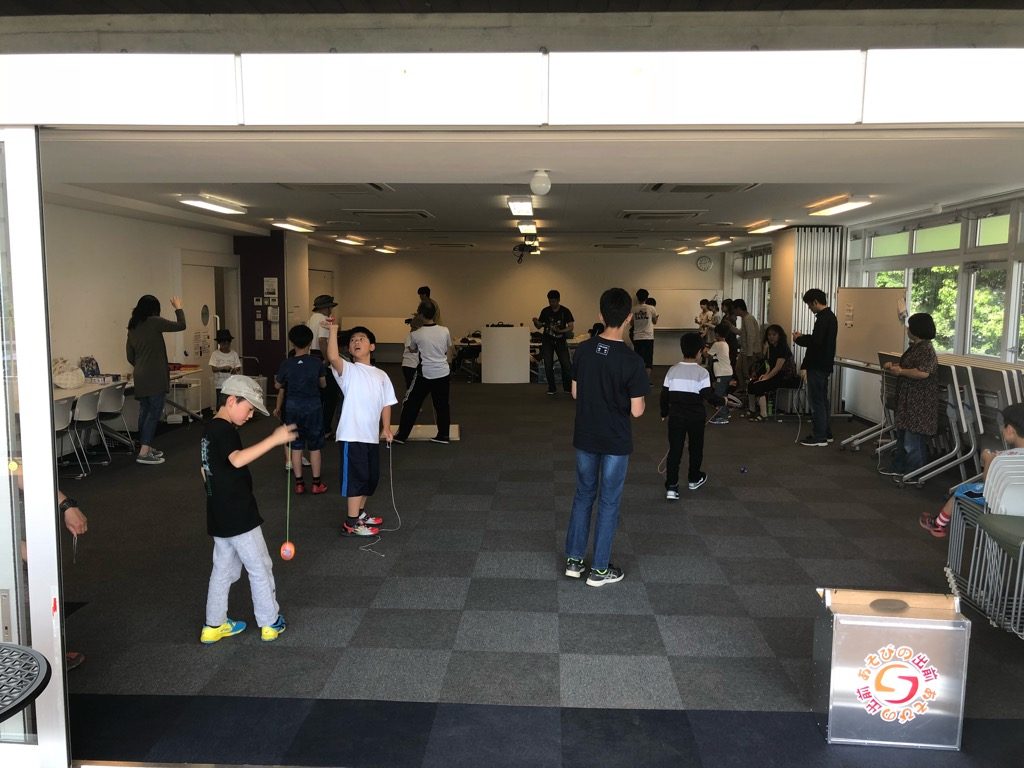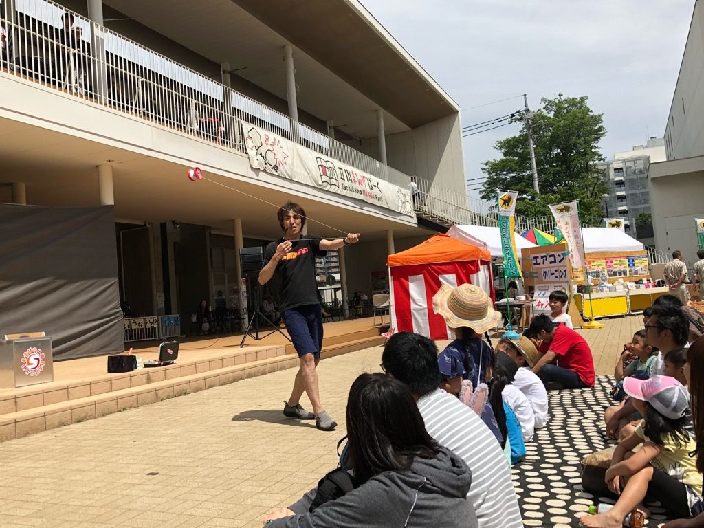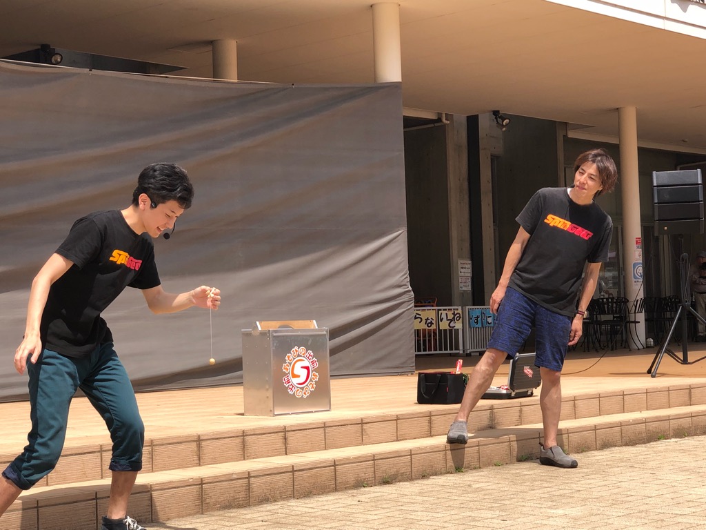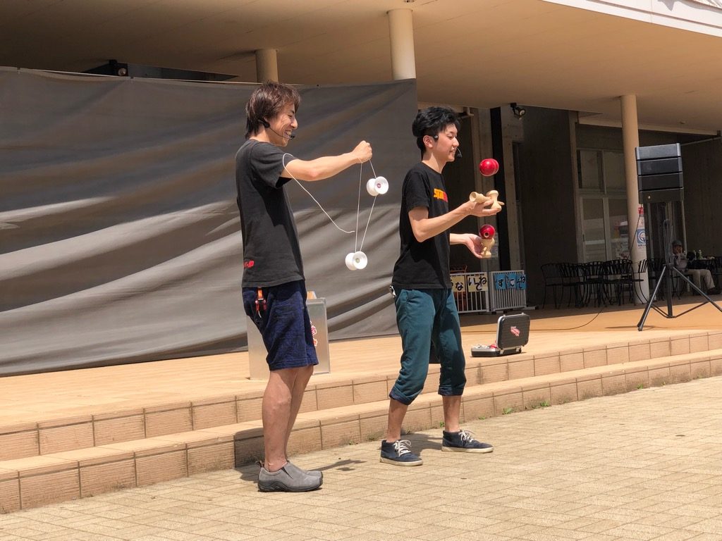 今年からの新ユニット、遊びの出前。ヨーヨーxけん玉xこまのプロの技をみて遊ぼう、ということでまんがぱーく大市のイベントの一部としてパフォーマンスをTAKA&Akiraで行いました。