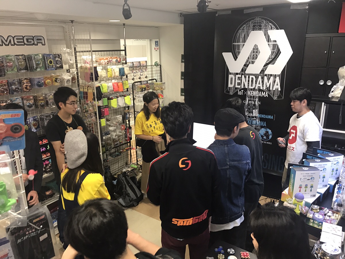 一台のスマートフォンに電玉を2個Bluetooth接続して参加者みんなで対戦ゲーム。