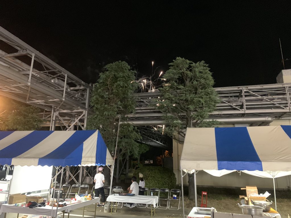 夜は工場の敷地内でナイアガラや打ち上げ花火!火気厳禁が解禁された特別な1日。