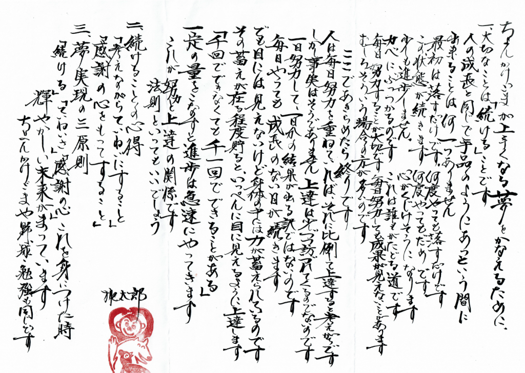 「続ける」「ていねいさ」「感謝の心」