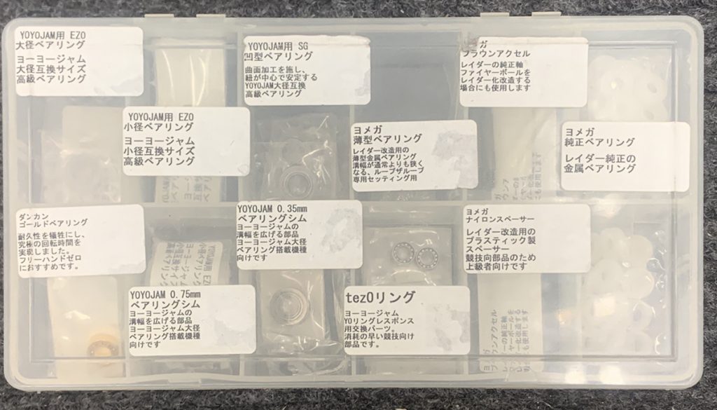 ガラスショーケースの外のブリスター系は一律で戻ってきていたのですがガラスショーケースに入っていたヨーヨージャムを中心にした高額商品(とパーツケースに入っているシムやベアリング)はそのまま行方不明になっていました。写真には写っていませんがヨーヨーファクトリーの初代スーパースターなども出てきています。何人かの担当が引き継いでいたのだと思いますが存在があることは知りませんでした。