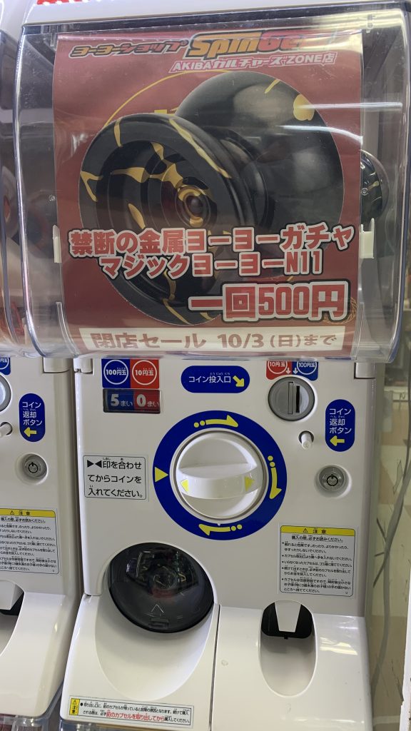 秋葉原にヨーヨー屋さんが当たり前のようにあって行けるのも1ヶ月を切りました。中野にヨーヨー屋さんがあったことが当たり前だった時期を懐かしむように、最後の秋葉原店舗を皆様の記憶に残していただき、10年後も懐かしんでいただけるような終わりにしていきたいと思います。