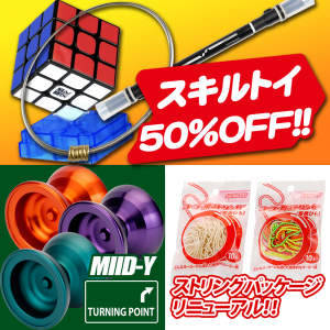 ペン回し、ジターリング、キューブ系パズルは店舗と連動して50%Offを9月末まで行っていきます。