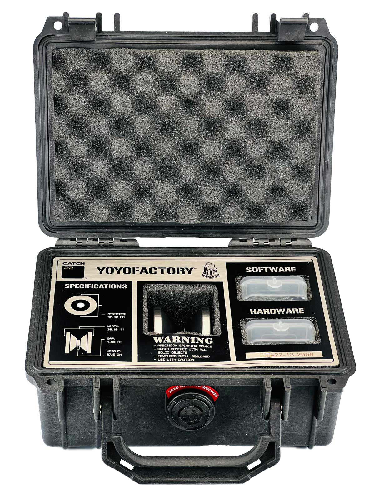 プロ機材のケースとしても信頼性の高い、ペリカン社製のケースに入ったまるでスパイツールのようなヨーヨーケース。ロマンがあります。日常的によくあるアクシデントに巻き込まれて、脱出する途中に、空から海に落としても、ビルの非常階段の5階から落としてもヨーヨー自体にはにダメージはないんじゃないでしょうか?(検証は自己責任でお願いします)