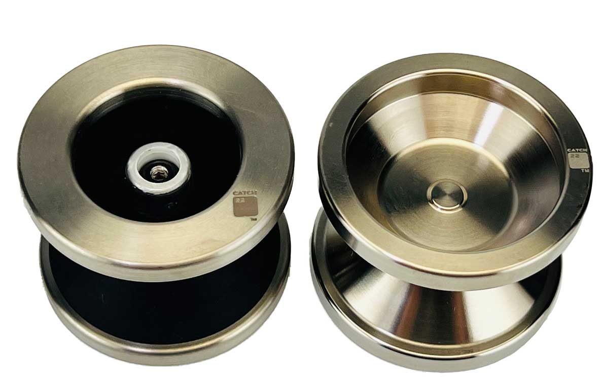 マグネシウムのヨーヨーも中々ですが、当時、メタルヨーヨーがようやく立ち上がってきた頃にチタンリムのバイメタルは先進的な試みです。常にヨーヨー界のトレンドを牽引してきたブランドとして満を持してのキャッチ22の登場だと思います。
