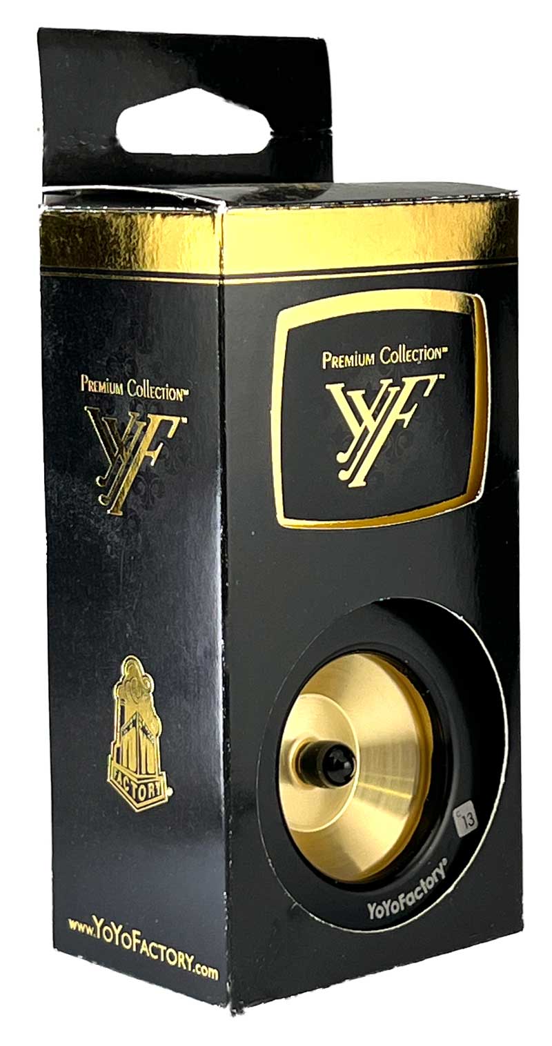 プレミアムコレクションの黒と金の箔押しの箱に入ったC13は歴代のヨーヨーファクトリーのカラーの中でもお気に入りの一つです。黒いアルマイト部分が波打っているのが見えるかと思います。