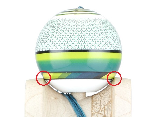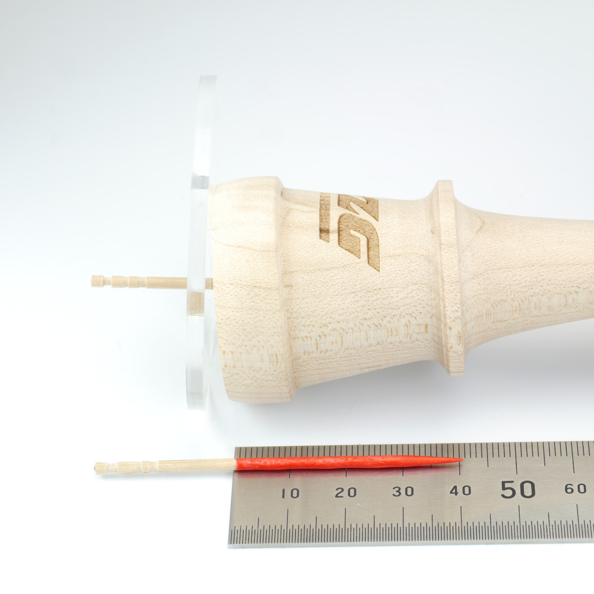 KWC(けん玉ワールドカップ)で使用できるけん玉は全長170mm/横幅75mm以下というルール(※)があるのですが、新作アンプシェイプの実測値はほぼ規定値いっぱいのフルサイズ化しました。