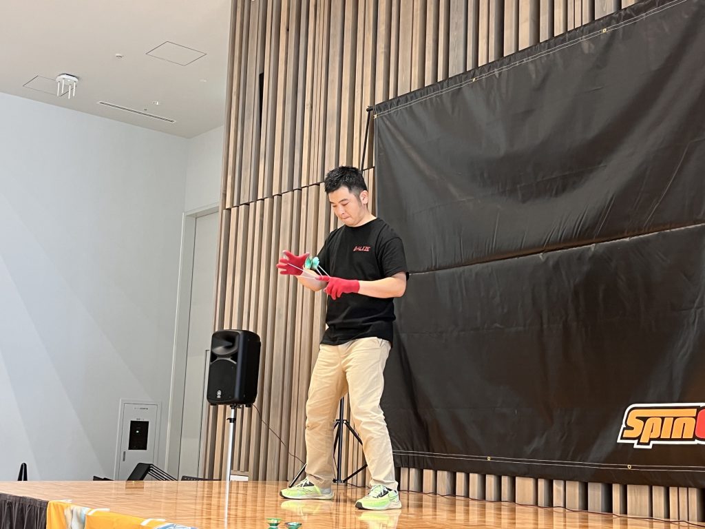 体験コーナーにはヨーヨー・けん玉・コマ・べーごまに加え、新たな遊びが仲間入り