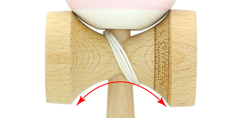 皿胴のカーブは近年色々な形状が各メーカーから開発されていますが、今回はけん玉ビギナーが見たときに「けん玉らしい」見た目を重視してシンプルなアールにしています。一回転の風車(ガンスリンガー)なら余裕ですが、2回転、3回転と連続させると最新モデルと比較してすっぽ抜けやすいので、気になるけん玉上級者の方は自己責任の改造で小皿側の下面を削り落としてみるのも良いです。