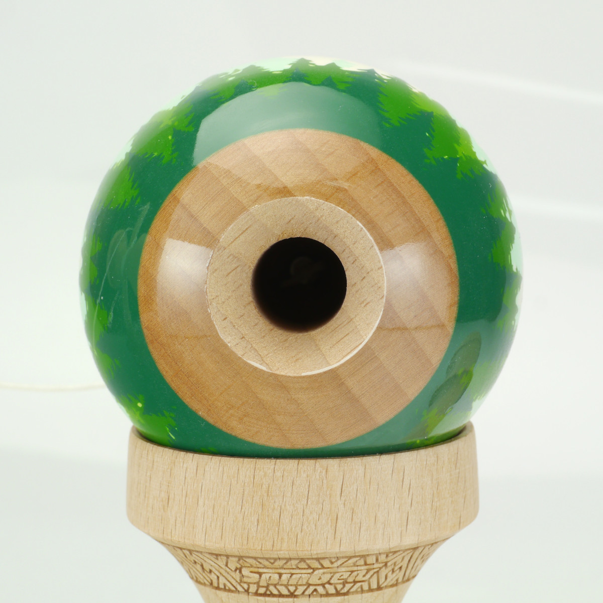 木材はけん・たま共にブナ材を採用。うぐいす系での食いつきの良さを重視し、けん玉ごとの個体差が比較的出にくい木材を選びました。