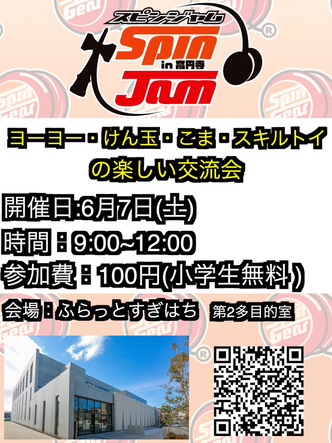 「スピンギアヨーヨーミーティング」 参加費:無料 開催日:6月7日(土) 時間:14〜17時 場所:高円寺ルック商店街事務所2F 楽しい交流会となってます!是非お気軽にご参加ください! *ヨーヨーのみの交流会となります。 *4A/5Aはお借りしている場所なので禁止となります。