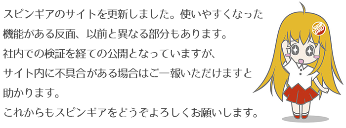 ご心配とご不便をおかけしたスピンギアの更新ですが無事に終了しました。CSカートというシステムのアップデートなのでお客様側から見て大きな変更はないかと思います。