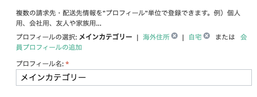 メインカテゴリーをいつもの住所に(例:自宅)、実家で受け取りたい時が度々ある場合は実家、という新しいプロフィールを追加していただくと注文の際に再入力せず選ぶだけで住所の使い分けができて便利です。