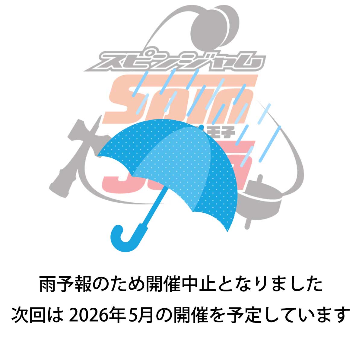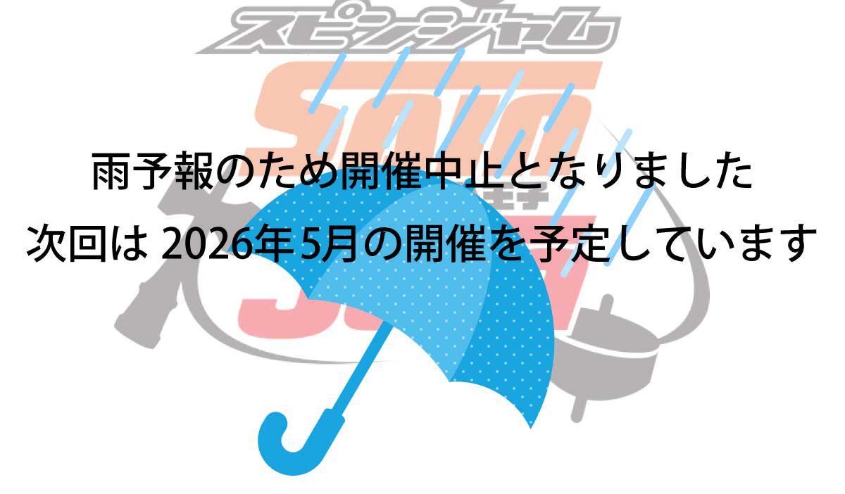 参加を予定されていた方にはご不便をおかけしてしまい申し訳ありません。ぜひ次回以降も青空スピンジャムにお越しいただければ大変嬉しいです。