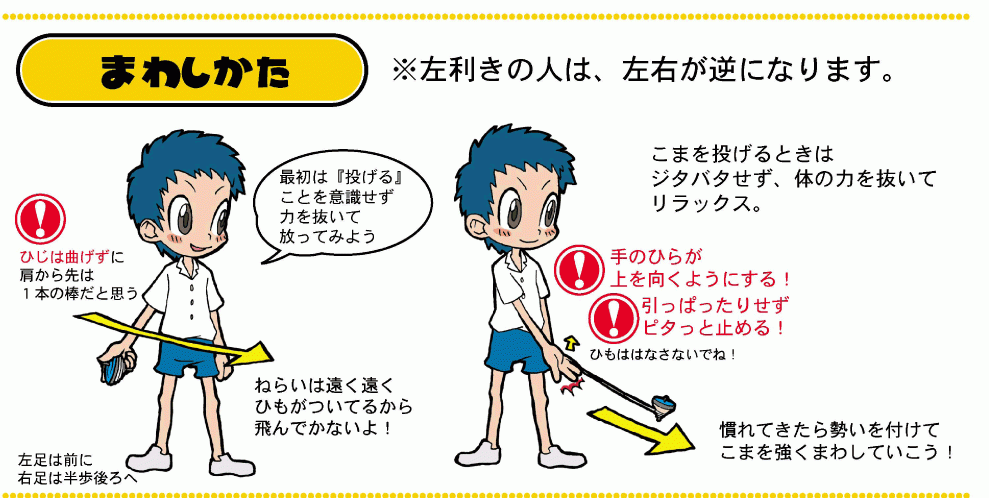 ひもが上手に巻けるようになったらさっそく回してみましょう。